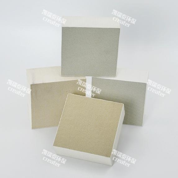 一氧化碳催化剂是以茧青石蜂窝陶瓷为载体,采用独特的 涂层材料,以高含量贵金属为活性组分制得,可用于脱除 各类可燃气未充分燃烧而产生的一氧化碳。 在温度230-280℃,空速(0.3~1)×10000h⁻ ¹条件下,经其 净化后的气体,一氧化碳含量可降至0.5ppm以下,催化一 氧化碳和氧反应成为二氧化碳,催化剂可以再生使用。且性能稳定,在水汽较大的环境下仍可以 稳定催化。 对低浓度CO气体具有良好的催化效果。