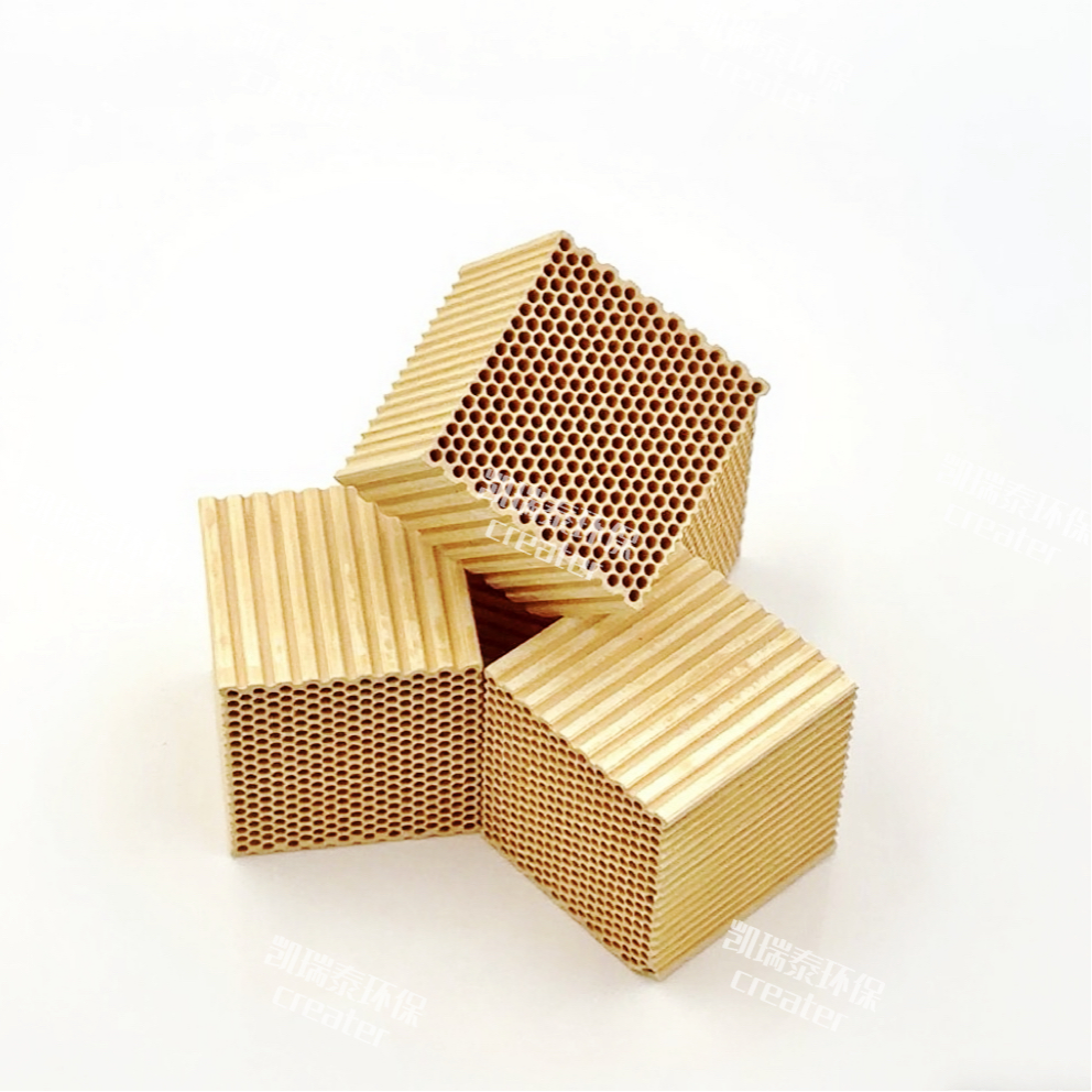 窑/锅炉原烟气在150-420℃条件下首先与氨气混合,经过导流、整流使烟气均匀分布,然后经过蜂窝式脱硝催化剂,混合烟气在催化剂表面进行催化反应,生成洁净的氮气与水,最后排空或进入下一个单元。