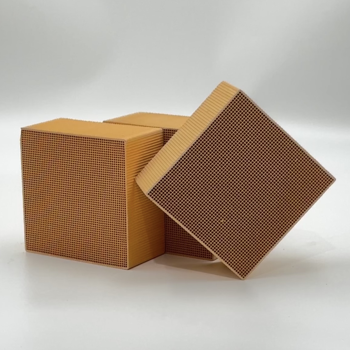 VOC(挥发性有机化合物)净化催化剂以堇青石蜂窝为载体,以贵金属和稀土材料为活性 组份,采用高分散率均匀分布的方法制备而成,是一种新型高效有机废气净化催化剂,特别 适用于化工、食品、机械、仪器仪表、家用电器、烘漆喷漆、印刷、彩钢制造等行业排放的 含有芳烃、烷烃等有机物以及一氧化碳等有毒有害废气的净化,净化废气的基本原理是催化 燃烧,在催化燃烧过程中产生贵金属催化剂的热量可以被综合利用。
